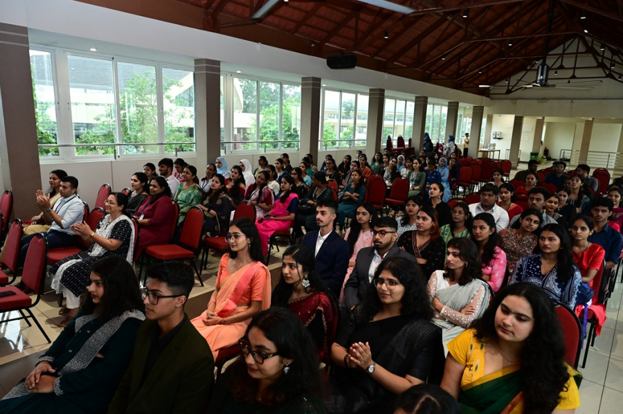 The motto of our institution, ‘Heal and Comfort,’ is instilled in us through the institutional anthem at every program. This was followed by an inspiring address from our Chief Guest, Dr. Hareesh Shiva Gouda, who shared valuable tips for the student council members and encouraged them to follow these sincerely. He also motivated the non–council members with his thoughtful words of guidance.